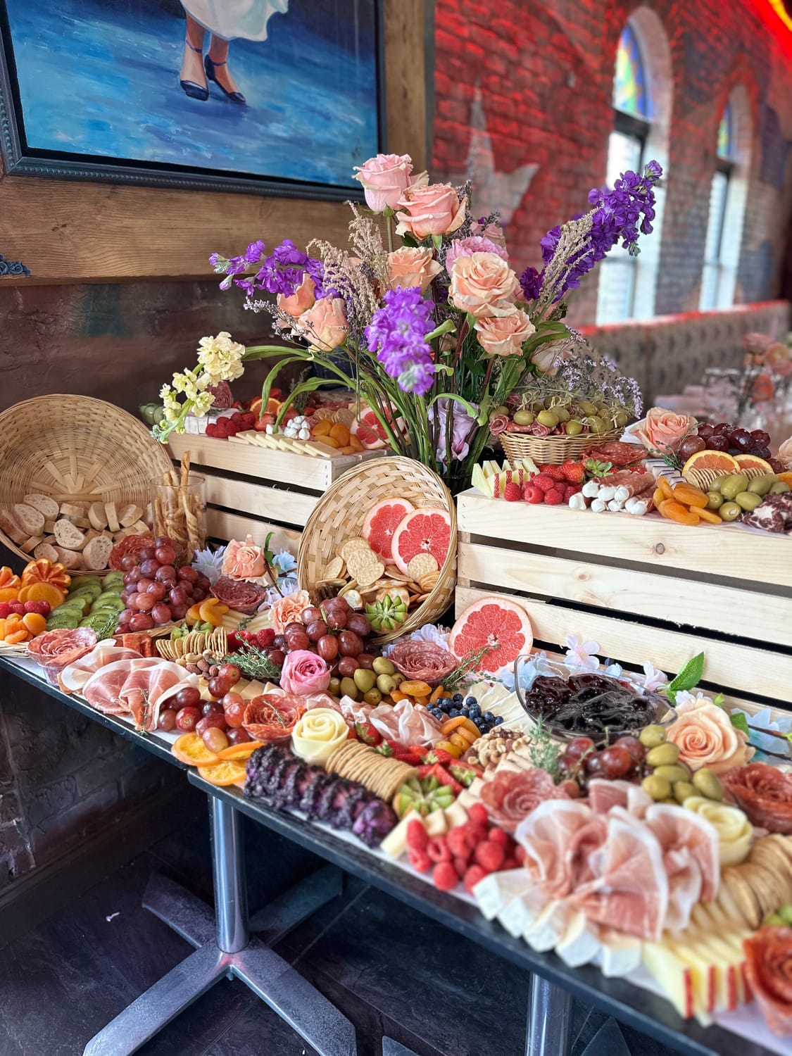 Cheese and charcuterie table with excellent presentation, adapted to the style of the event.